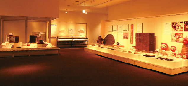 | 「最後はもう一つの変わり種、民俗展示室だよ。ここも定期的に展示替えをしていて、今は『火とくらし』がテーマだって」 |
