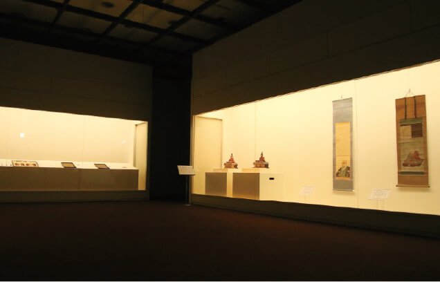 | 「常設展示室の中には、ちょっと変わり種の部屋もあるんだ。その一つが美術展示室。ここは季節ごとに展示替えを行い、日本美術の魅力を伝えているよ」 | ||