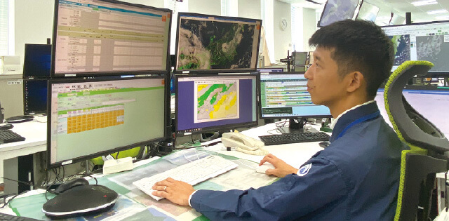 昨年度までは、天気予報や注意報・警報を発表する業務を担当していて、夜勤もあるシフト勤務でした。特に緊張するのは警報を出すときです。重大な災害が起きる恐れがあるのに加え、警報の発表をきっかけに、警察や消防、自治体など、さまざまな組織が防災対応のために本格的に動き出すからです。警報を出すときには、当番の予報官の判断だけでなく、上司の承認が必要です。本庁では、警報を発表する前に予報課長に「このような理由で警報を出します」と伝えて、承認をもらいます。