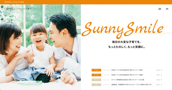 | sunnysmile協会は、「育児に疲れたママに笑顔になってもらうための団体」です。毎日が楽しくなる子育て方法をオンライン講座などで伝授するとともに、母親同士のコミュニティー運営をサポート。「子育ての知識を仕事に生かしたい」という母親には在宅ワークの方法も教えています。同協会のホームページでは、開催講座やイベントの情報、子育て経験談などが閲覧できます。 | |