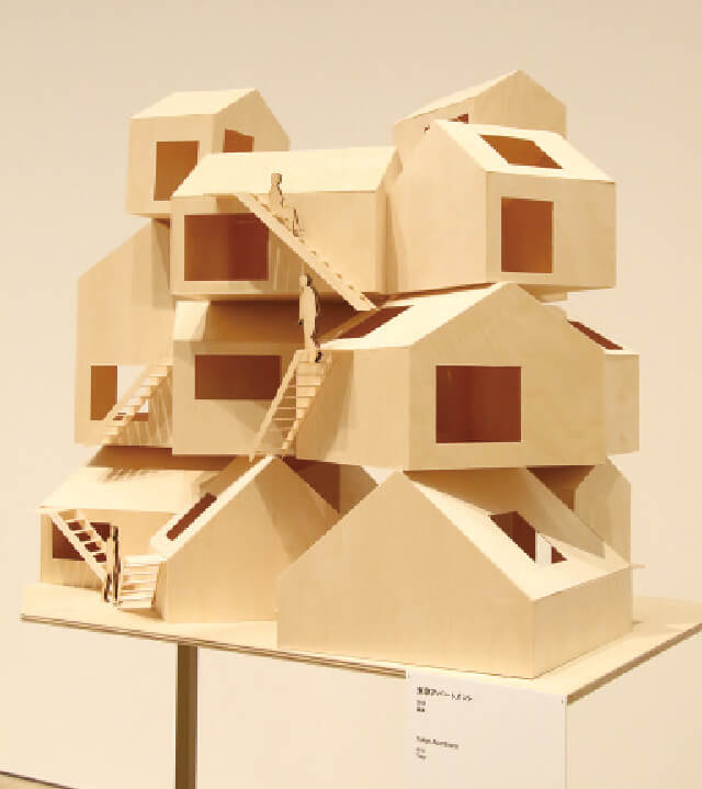 | 「同じような部品をたくさん組み合わせたもの、何の部屋にするか想像力をかき立てられる構造のもの…。大屋根リングをはじめ、円をテーマにしたものも多いね。どれもデザインがユニークだなあ」 | ||