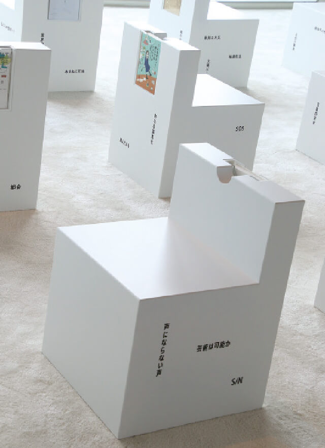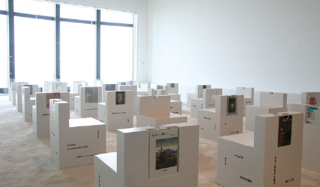 | 「模型のゾーンを抜けると藤本さんの作品の年表があって、その横の小部屋には椅子が並んでいるよ。ここで休憩してもいいし、備え付けの本を読んでもいいんだ」 |