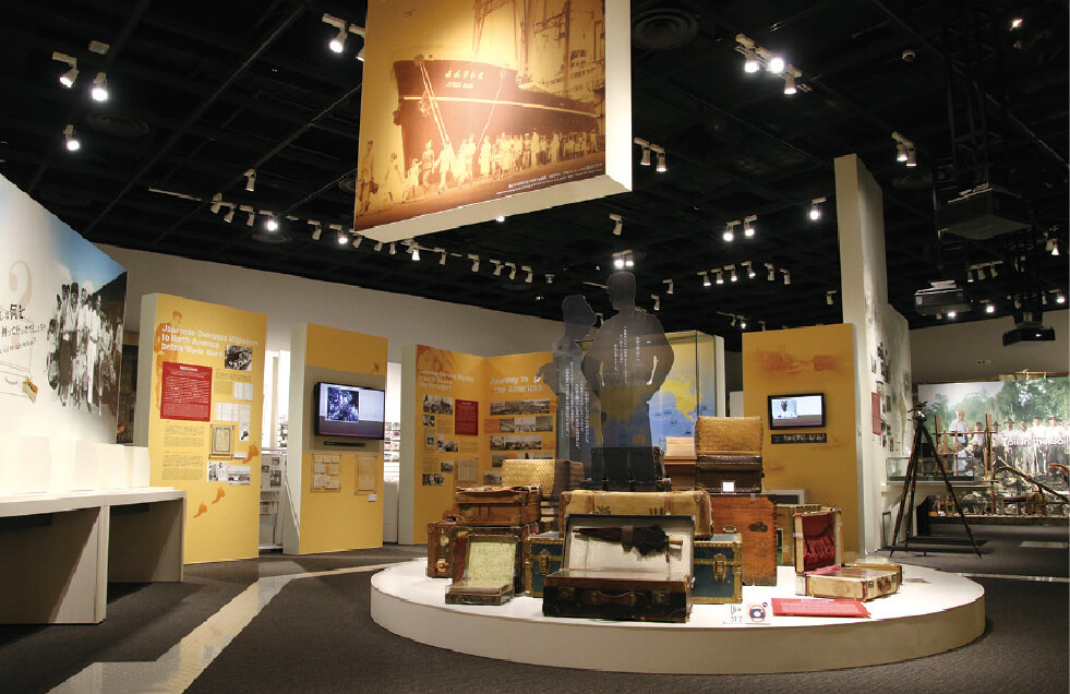 | 「こっちは移住者の家庭を紹介したコーナーだ。わあ、現地で食べていた料理のサンプルもあるよ。のり巻きやいなりずしは、移住者たちの集まりなどでも振る舞われたんだね」 | ||