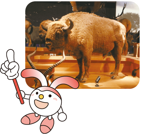 | 「さすが大型獣は迫力満点だね。ヘラジカやスイギュウなど、角を持つ動物がたくさんいるけど、それぞれ角の形が違うのがおもしろいよ」 | ||