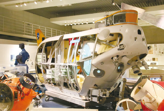 | 「これは有人潜水調査船『しんかい6500』の2分の1サイズ模型か。水深6500mまで潜れる船なんて、とんでもない性能だよ」 | ||