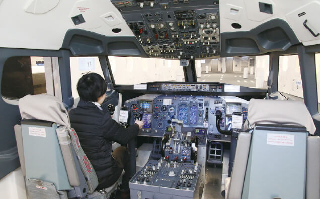 | 「パイロット、整備士、客室乗務員、グランドスタッフ…。さまざまな人が使う道具も並んでいるよ。安全で快適なフライトは、みんなが力を合わせることで初めて成り立つんだな」 | ||