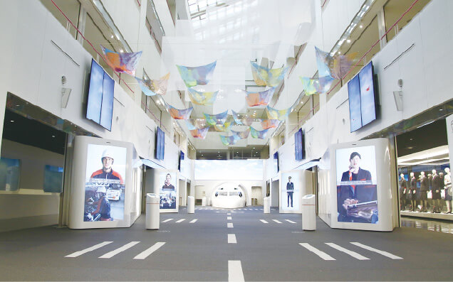 | 「最初は展示エリアの自由見学ね。うわあ、この『スカイランウェイ』のゾーンは、名前のとおり、滑走路みたい。ここでは航空業界の代表的な職種について紹介しているよ」 | ||