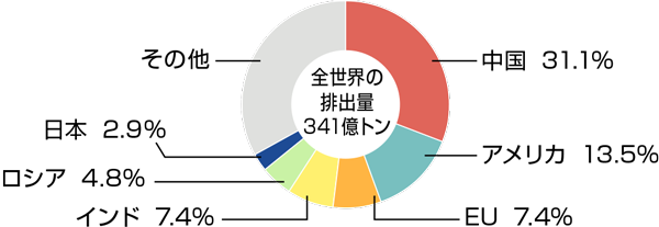 ●エネルギー起源(火力発電など)CO₂排出量の国別割合(2022年)(環境省の資料より)