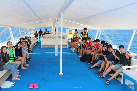 2年次には全員が2週間のセブ島短期語学研修に参加します。語学学校の施設に宿泊し、英語のレッスンを受けたり、現地のアクティビティを体験したり、現地の子供たちと交流するなどして、異文化について学び、多くの気づきを得ます。その経験をもとに、3年次の3学期は、自分のめざす方向性に合わせ、「ニュージーランド学期留学」か「国内グローバルカリキュラム」を選択します。海外留学を通して、語学力の向上だけでなく、人種や宗教など多様な価値観を知り、チャレンジ精神も培っていくことをめざしています。