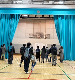 聖光学院中が2日に実施したのは第1回入試です。この日は7時の開門と同時に、控室として充てられたラムネホール、ポアトラホール、食堂の3か所を開放。早めに到着した受験生親子は、そのいずれかで試験教室への入室開始時刻である7時20分を待ちます。その時刻を迎えるとアナウンスが入り、受験生はいよいよ決戦の場へと移動しました。なお、4日には第2回入試が行われました。