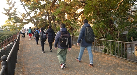最寄り駅である香櫨園駅から甲陽学院への道のりは、夙川沿いの遊歩道を通るため、静かで歩きやすい環境です
