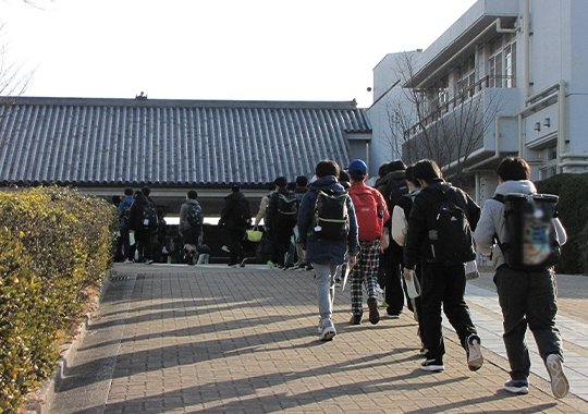 東大寺学園でも、試験教室のある校舎に入れるのは受験生のみ。入場口で保護者と別れ、試験教室へと向かいます