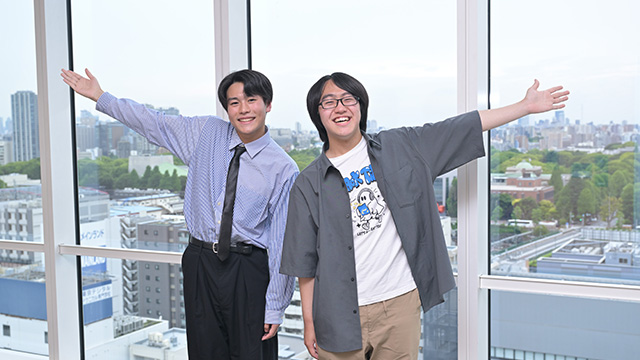 校舎の15階は、2人のお気に入りの場所。東京国立博物館や国立西洋美術館などがある上野の街を一望できます