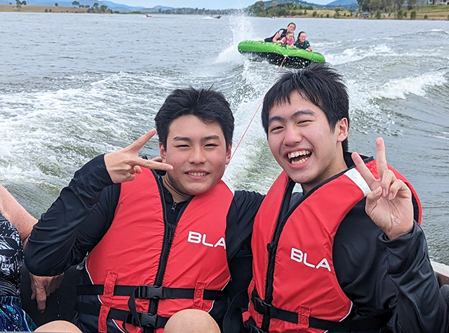ターム留学(高1・2希望者対象)で、休日にアクティビティーを楽しむ本多さん(右)と遠藤さん(左)