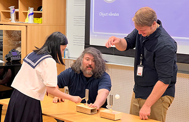 湯浅 夏休みには中学生を対象に3日間のイングリッシュサイエンスキャンプを実施しています。英語を学ぶのではなく、英語で科学を学ぶキャンプで、今年は清里で「音」をテーマにしたアクティビティーを英語で行いました。英語で音の仕組みを学んだり、自然の音を採集して曲を作ったり。学んだ成果は最後に英語で発表します。このキャンプに限らず、本校ではアウトプットを重視しています。少し負荷の掛かる場で発表させることで、インプットしたものの形があらためて見えてくるとともにプレゼンテーション力が育ちます。