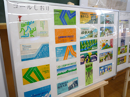 「大菩薩峠越え強歩大会」61年分の「ゴールしおり」。伝統行事の歴史が伝わってきます