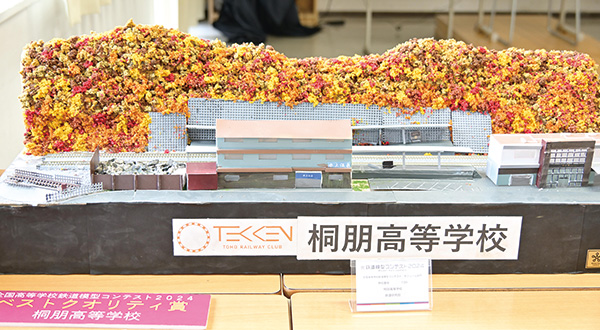 毎年大人気の交通研究部鉄道研究班の展示の入り口には、部員お手製の自動改札機が設置されています。これは、オリジナルICカード「Kirica」をタッチすると音と光が出るという仕組みで、多くの来場者が本格的な演出に驚きの声を上げていました。教室内では、JR中央本線の塩尻駅やJR御殿場線の足柄駅など、さまざまな駅周辺のジオラマと、その間を駆け抜ける鉄道模型が展示され、多くの子どもたちが目を輝かせていました。