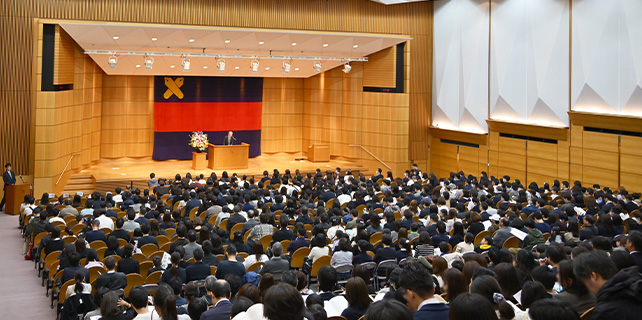 一方、隣接する慶應義塾大学三田キャンパス西校舎ホールでは、中等部の学校説明会が開催され、午前・午後の回ともに満席に。中等部部長の松本守先生のあいさつに続き、生徒の日々を紹介する動画も上映されました。
