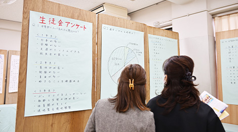生徒会では、「中等部ならではの珍しいことは?」といった生徒へのアンケート結果も展示