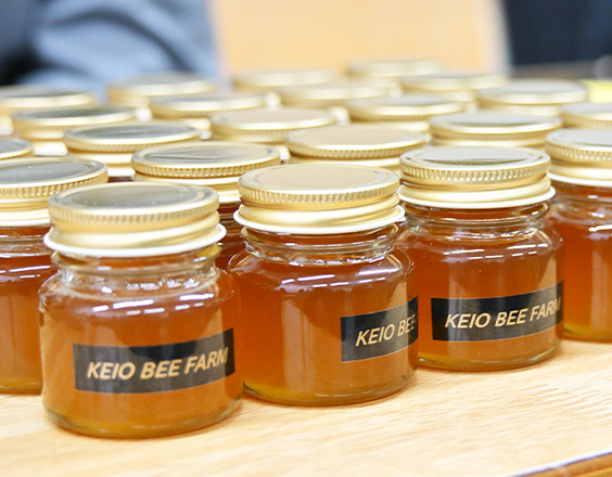 選択授業で行われた養蜂で収穫したハチミツ。不要なステンレスボトルとの交換で持ち帰ることも可能に