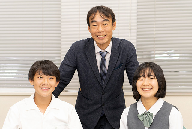 左から、佐藤 壱太さん(中3)、北村 洋先生、池部 舞さん(中3)