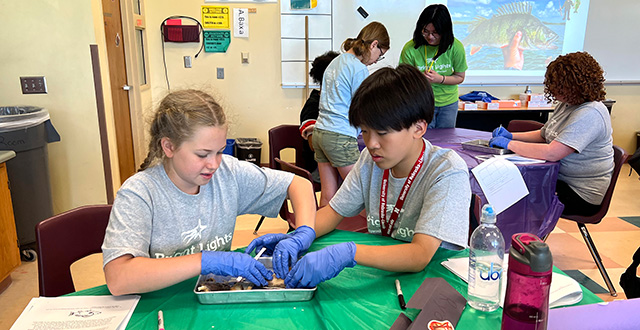 体験授業の1つである「生物解剖」の様子。オールイングリッシュで、現地の子どもたちと一緒に5日間参加します