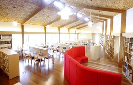 目黒区八雲の閑静な住宅街に位置する八雲学園。メディアセンターの自習スペースなど、集中して学習できる環境が整っています。また、アメリカ西海岸の研修センター「八雲レジデンス」など、学外の施設も大変充実しています。