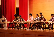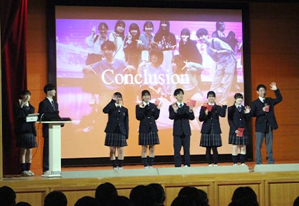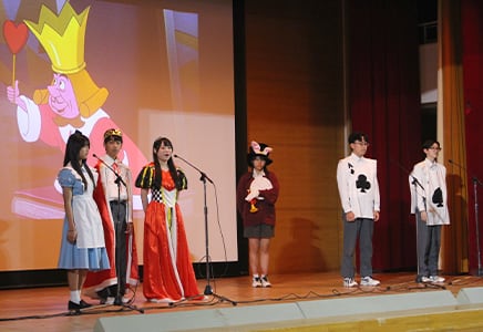 12月の英語祭は1日中英語づくしのイベント。英語で接待をするレストランや英語ゲームがあり、舞台では英語劇や英語での歌の発表も行われます