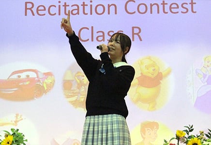 6月には、英語を学びはじめて間もない中1が、一定量の英文を覚えて人前で発表するレシテーションコンテストを開催
