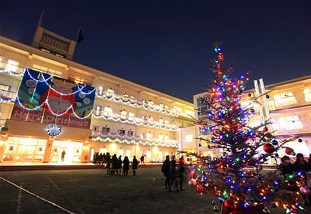 毎年クリスマスシーズンには、校舎に電飾を施します。隠れた名所となっています