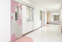 中学はダイヤ、高校はクローバー。教室入り口には学年を示すポップなマークが入っています